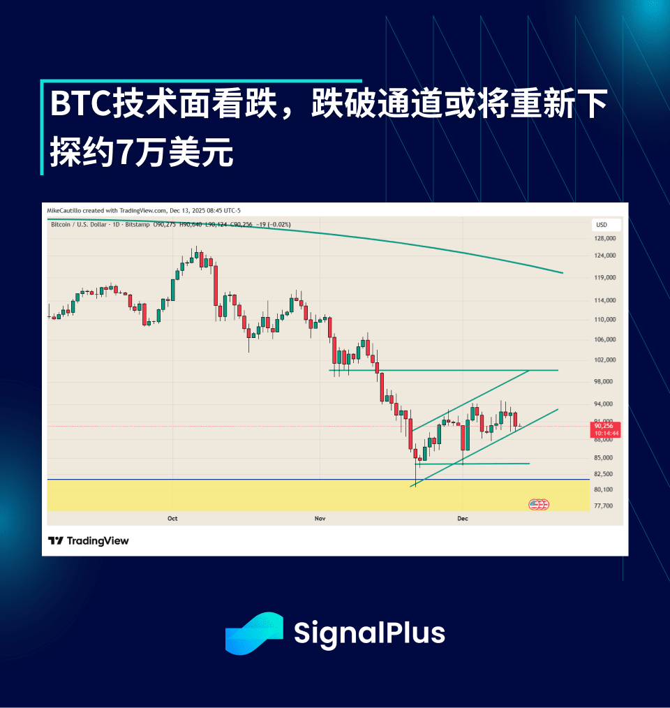 D'un point de vue technique, la tendance des prix reste dangereuse, et si elle tombe en dessous du canal actuel, elle pourrait redescendre vers un niveau de prix d'environ 70 000 dollars. Nous maintenons notre tendance baissière et conseillons une extrême prudence avant la publication des données CPI/emplois non agricoles de cette semaine, en particulier dans un environnement de négociation léger pendant les vacances.