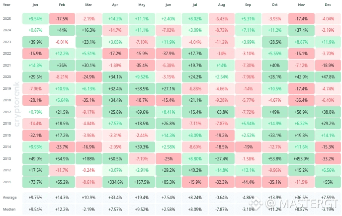 Diciembre es un mes impredecible para Bitcoin. Aunque su rendimiento promedio histórico ronda el 8.42%, el rendimiento mediano es apenas del 1.69%. Mientras tanto, el último mes de 2025 inició con una caída del 5% en el precio de BTC.