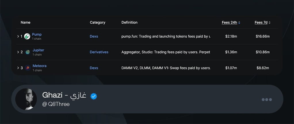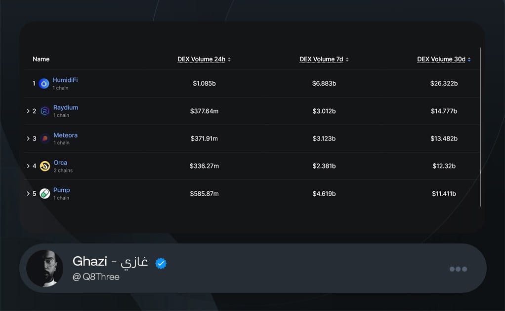 Par exemple, la plateforme Raydium était en tête pendant un certain temps grâce à sa collaboration avec PumpFun.