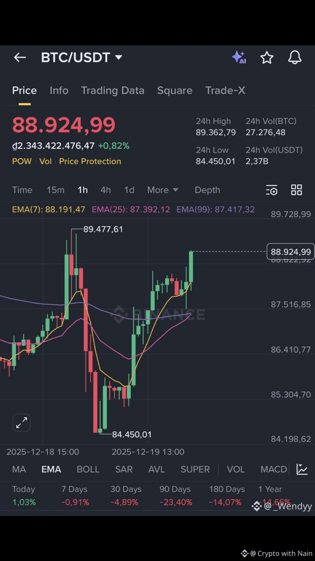 Bitcoin ($BTC /USDT): approx. $87,000–$88,000 on Binance spot right now — showing small intraday gain/flat movement. �
