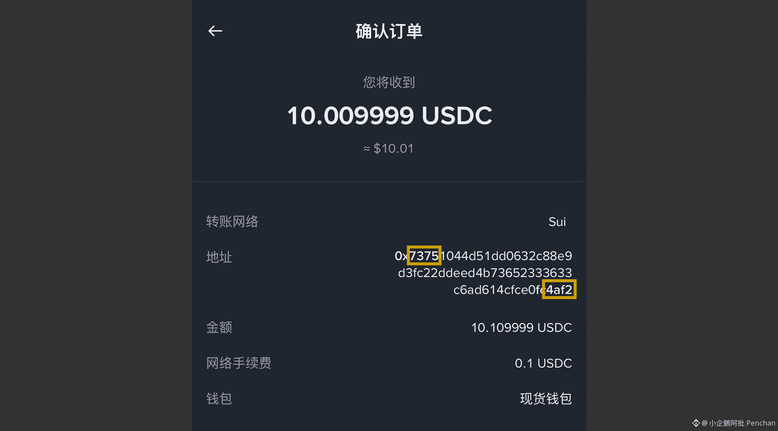 三、開始確認地址:切回去 X 錢包,默唸地址的頭 "7375"、尾 "4af2"