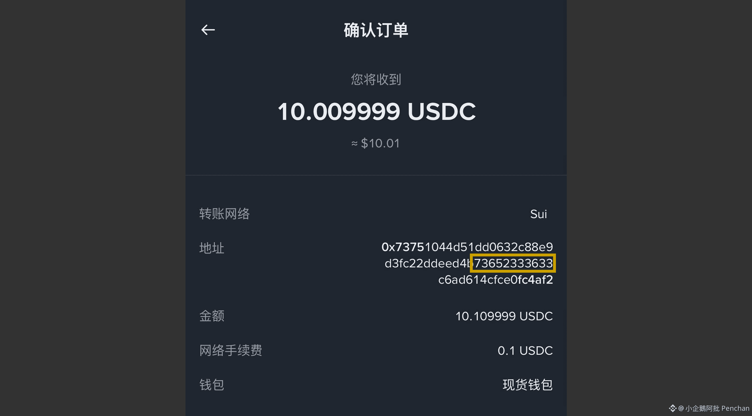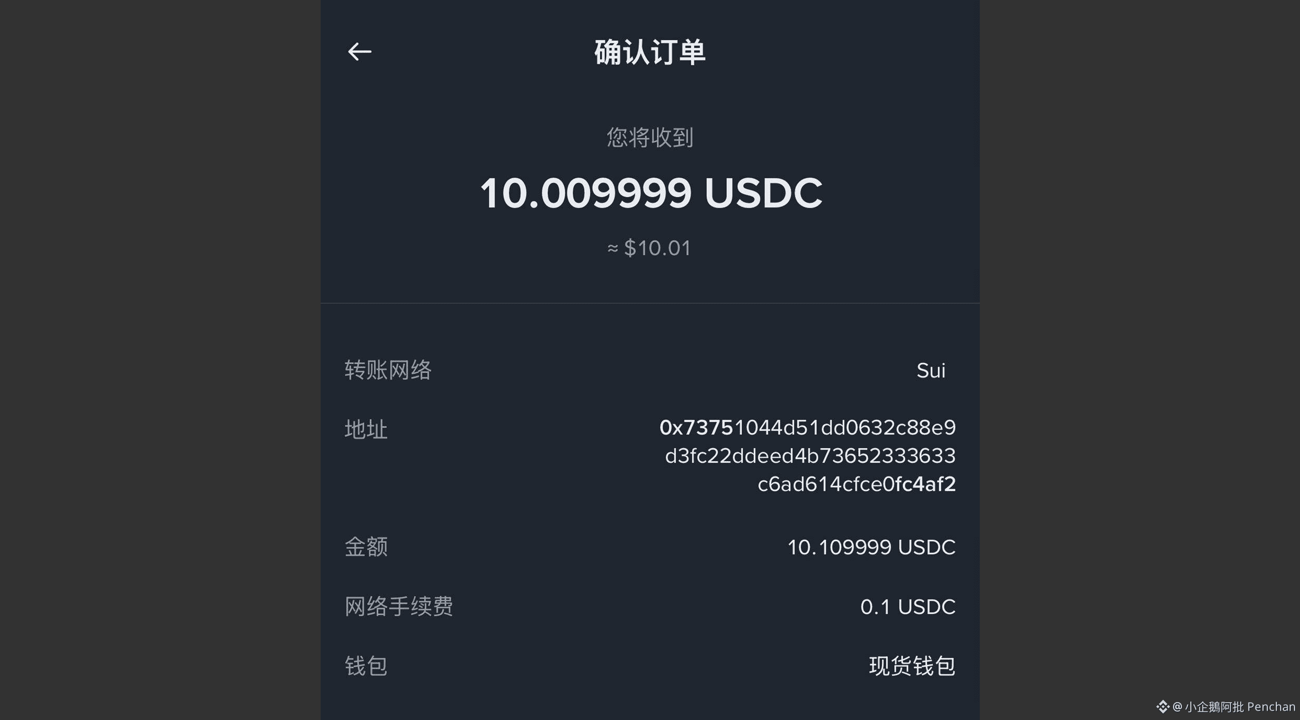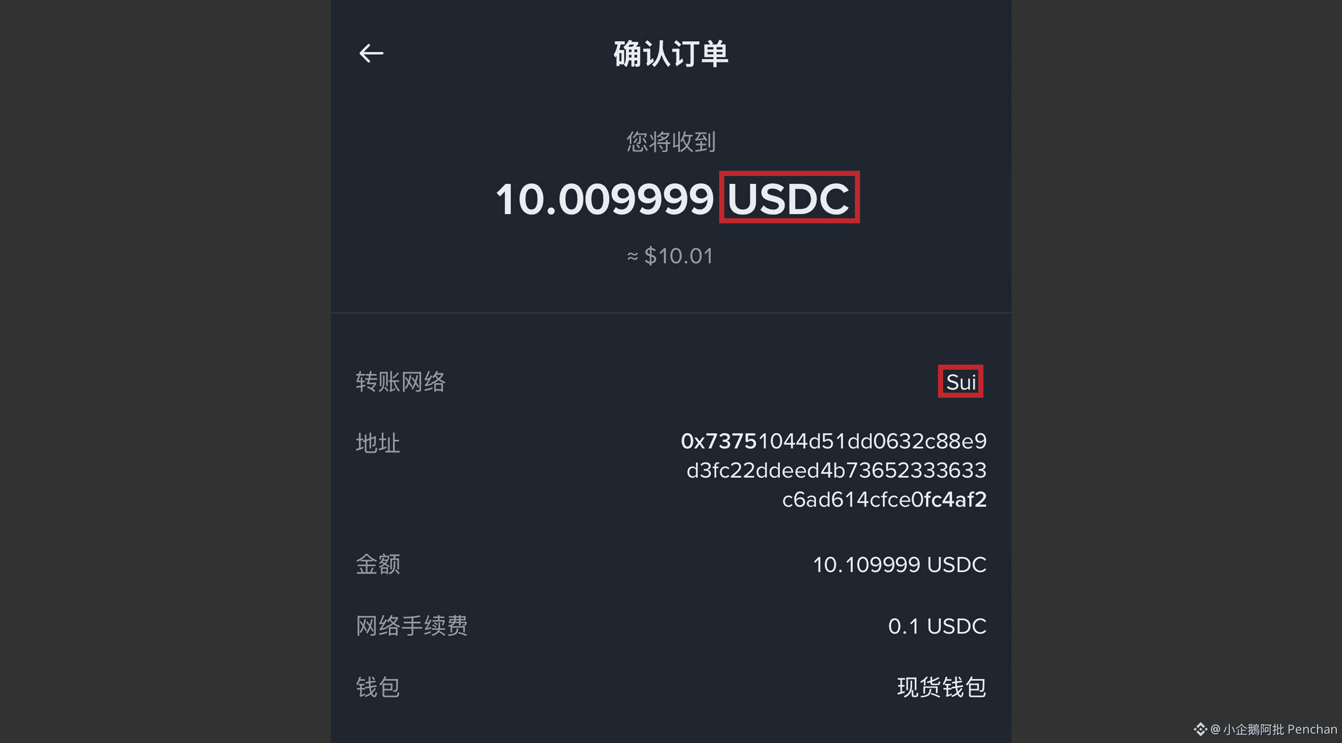 一、在 X 錢包內選好幣 USDC 和鏈 Sui 後,複製地址