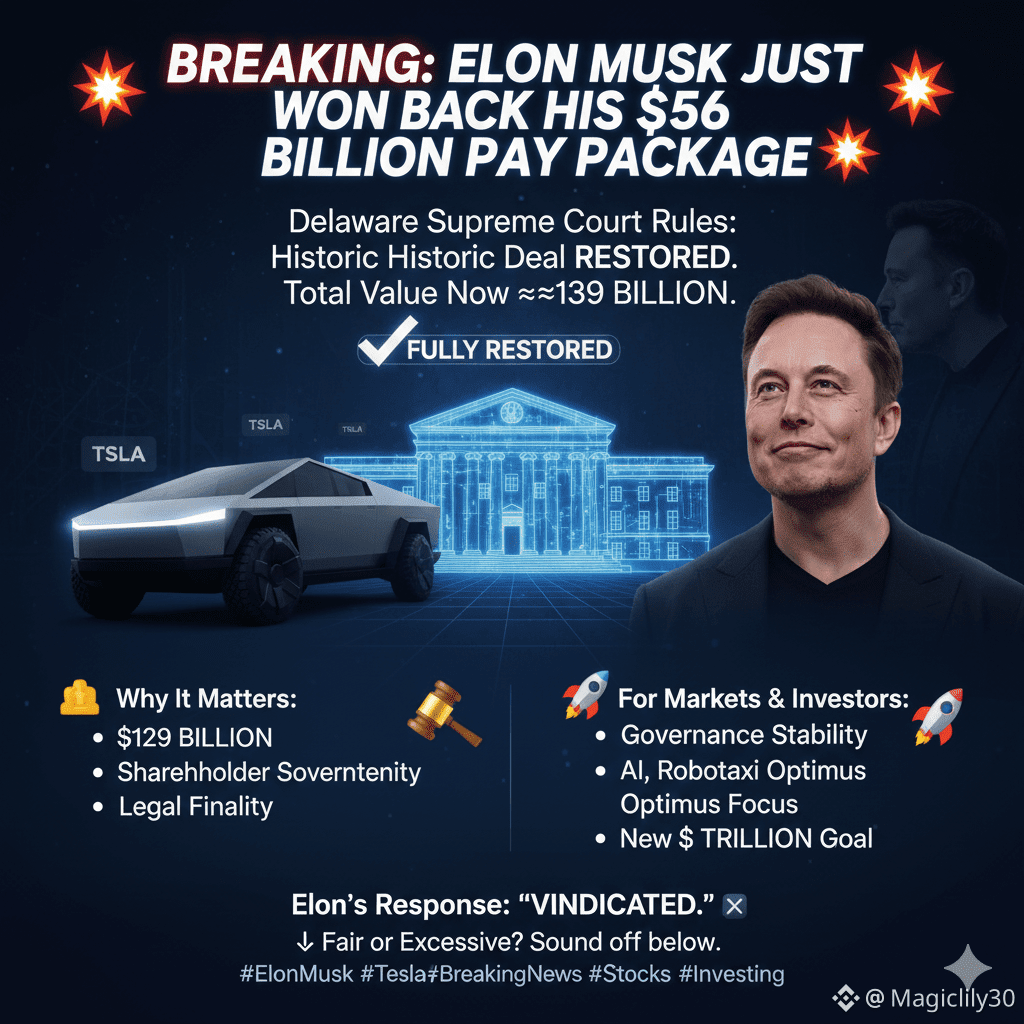 The Delaware Supreme Court has officially ruled: Elon Muskâs historic 2018 compensation deal is FULLY RESTORED.
