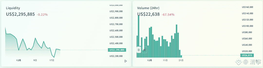 Conflux eSpace上的去中心化交易所Swappi的流动性、成交量变化不大。