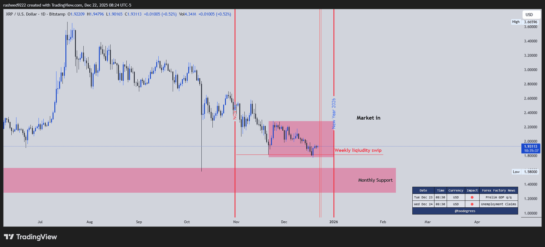 XRP$XRP se négocie actuellement dans une plage de consolidation après un récent balayage de liquidité sur la période hebdomadaire. L'action des prix suggère que le marché est en phase de prise de décision, avec des participants attendant une confirmation macro.#usd #MacroMarkets #EconomicData #cryptoeducation