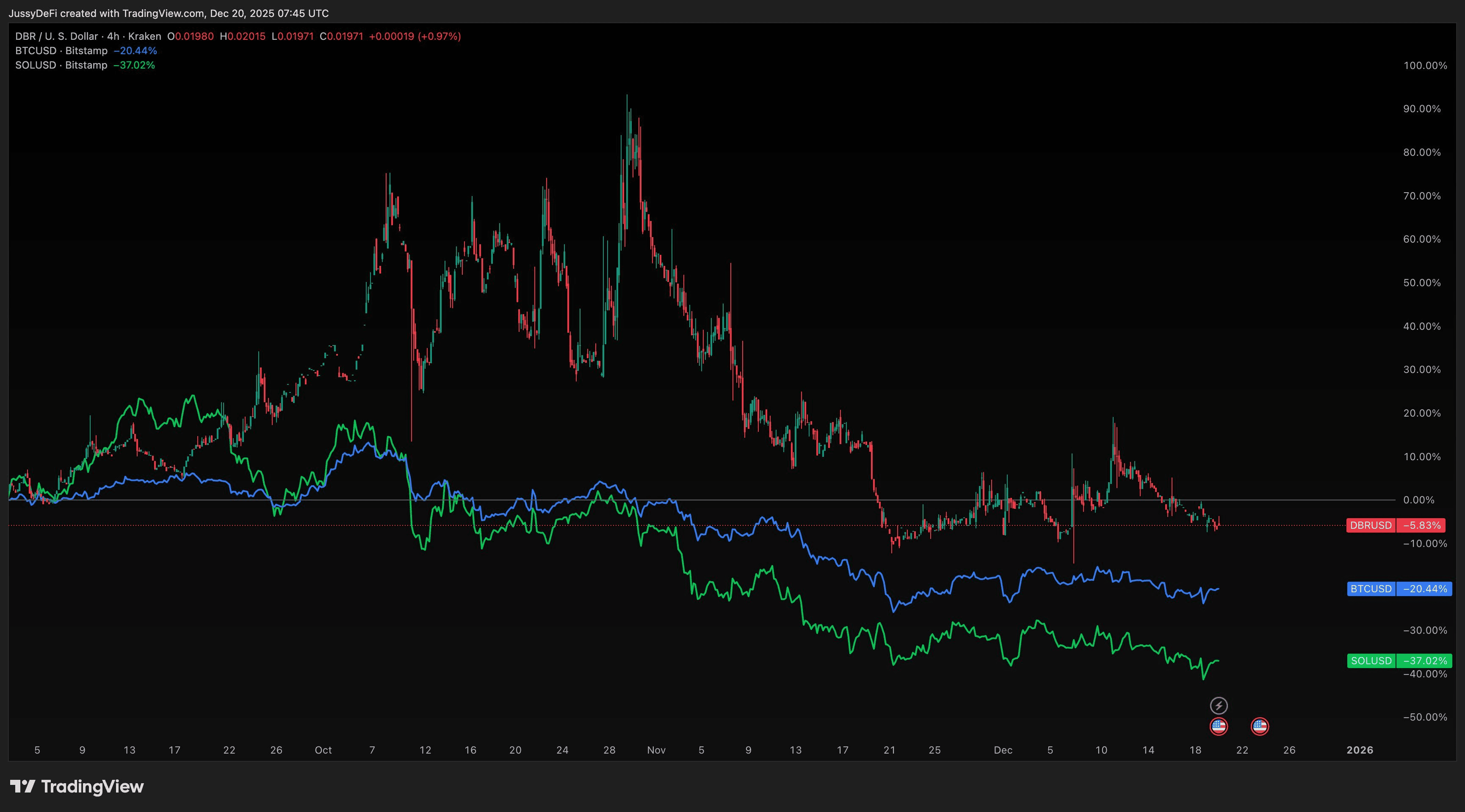 BTC, en tant que référence de l'industrie, a baissé de 20 %, tandis que la baisse de DBR n'est qu'un quart de cela.