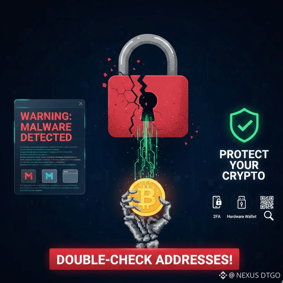 Clipboard Hijackers: This is a silent but deadly attack. When you copy a crypto wallet address to send funds, the malware detects the address format and replaces it with the hacker's address. If you don't double-check before clicking "Send," your money goes directly to the thief.