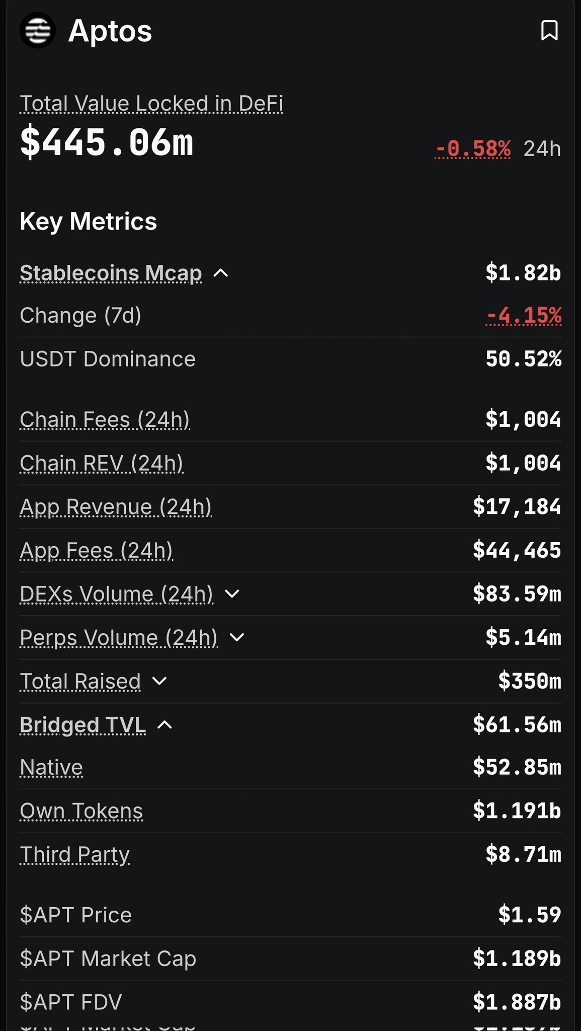 Mais les frais du réseau/revenus sont faibles par rapport à l'ampleur du récit autour d'APT comparé à des monnaies comme ARB et AVAX.