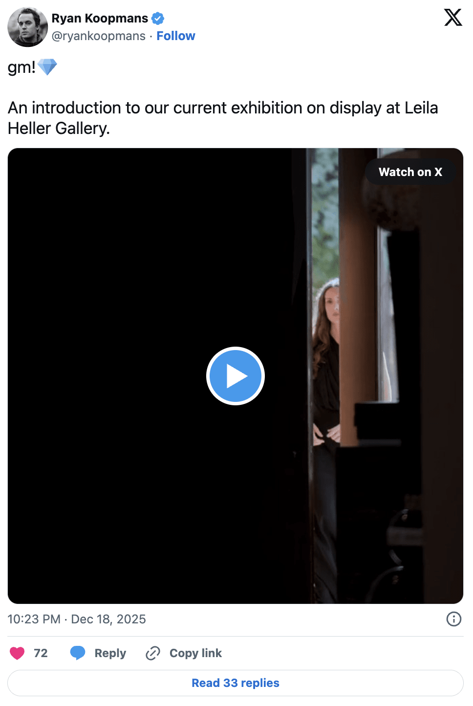 L'artiste numérique canado-néerlandais Ryan Koopmans et l'artiste numérique suédois Alice Wexell exposeront leurs œuvres (La sauvagerie intérieure) à la galerie d'art contemporain Leila Heller à Dubaï du 11 novembre 2025 au 8 janvier 2026.