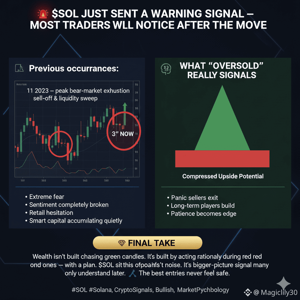 $SOL has entered a deep oversold zone that has shown up only a handful of times in its entire history.