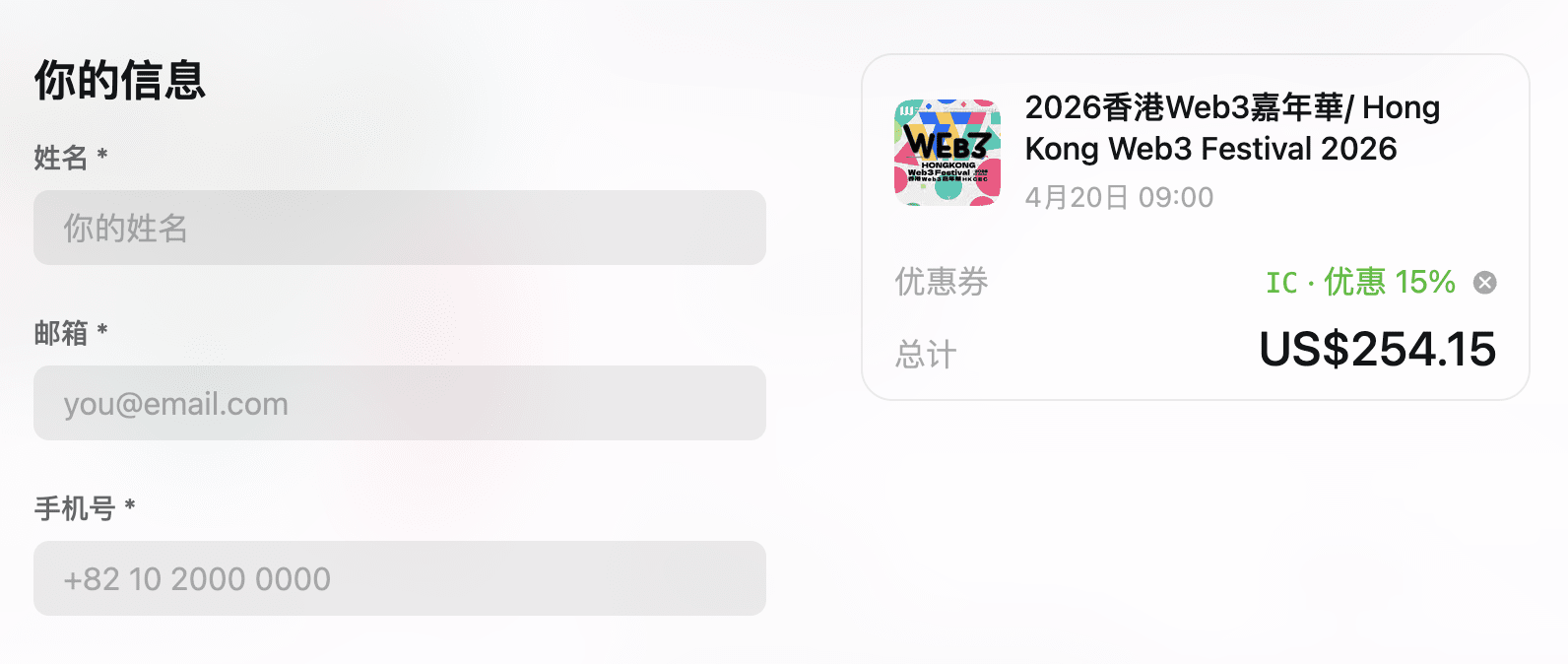 En tant que partenaire officiel de la communauté du Hong Kong Web3 Carnival 2026, la communauté chinoise IC offre à tous une réduction de 15 % sur les billets exclusifs, code de réduction : IC.
