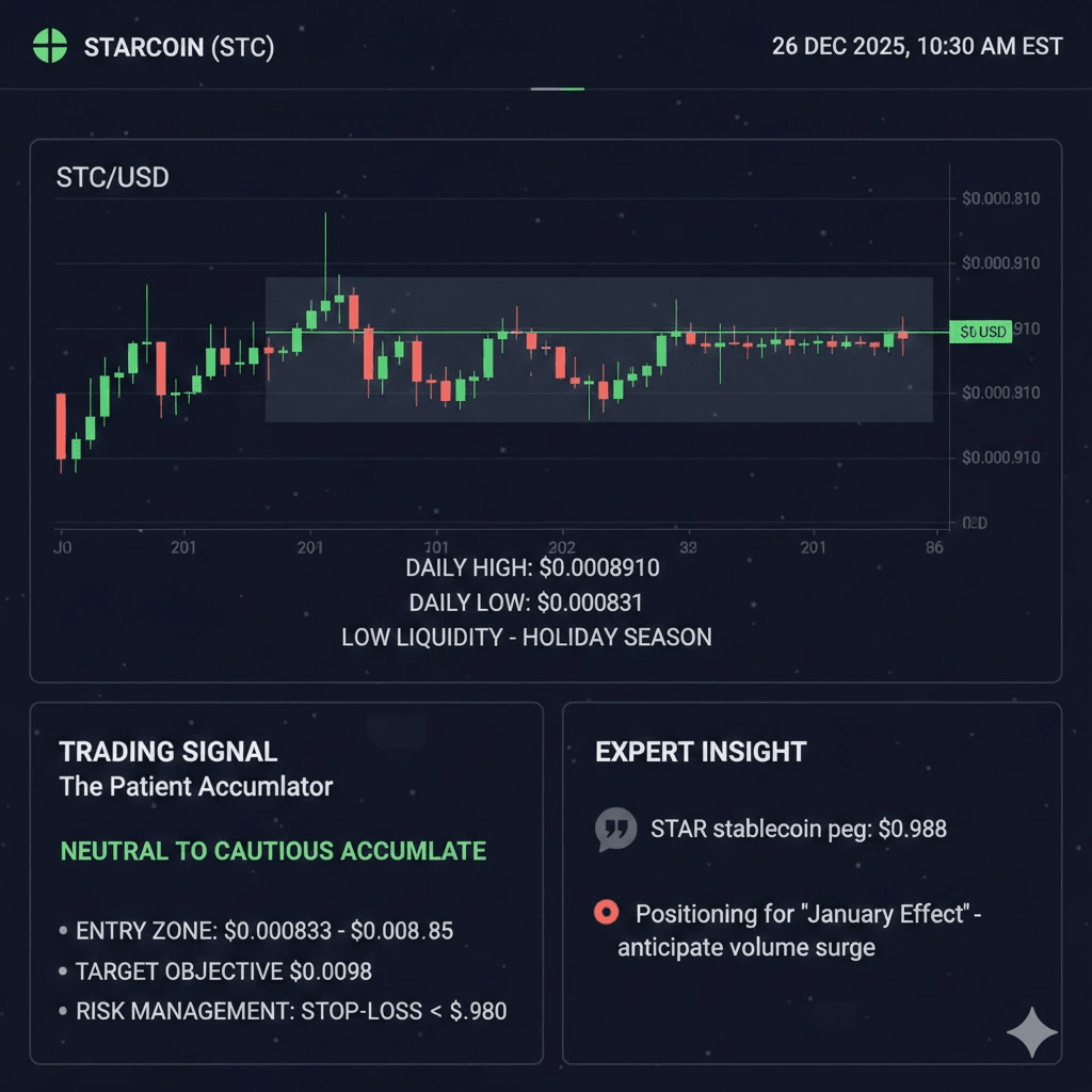À partir du 26 décembre 2025, le marché pour Starcoin (STC) et les actifs associés "STAR" montre une phase de consolidation étroite caractéristique de la saison des fêtes.