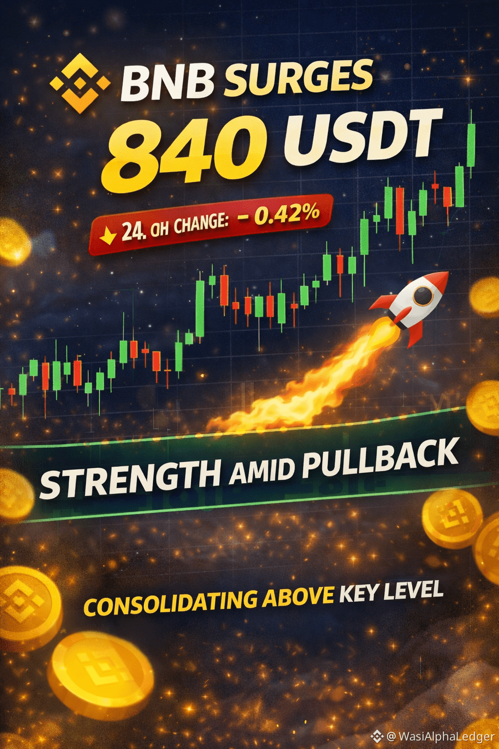 $BNB has climbed back above the 840 $USDT mark, showing resilience even as the broader market remains cautious. Over the last 24 hours, the price recorded a modest 0.42% decline, signaling consolidation rather than weakness.