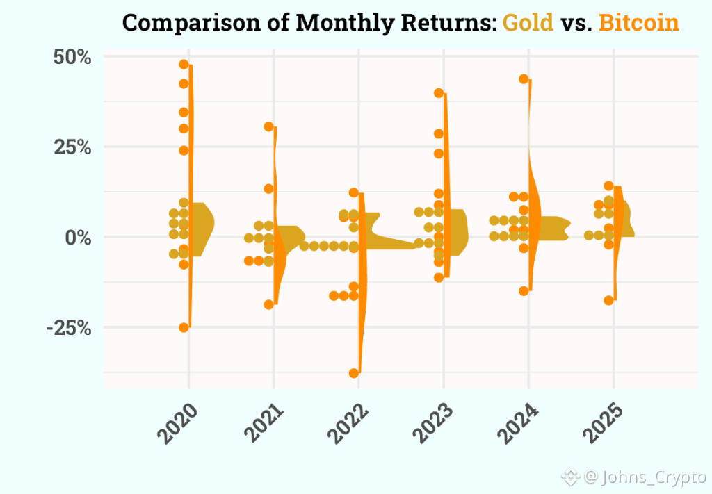 ⚖️ BTC vs Gold: Gold remains stronger in relative performance this year; BTC showing some recovery at year-end.