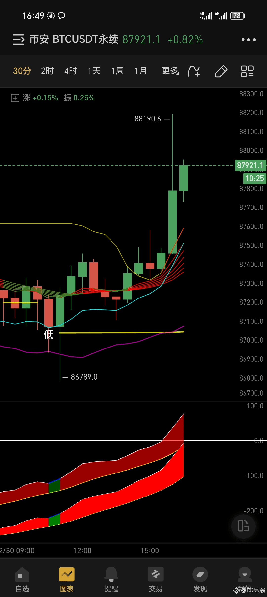 目前30分钟级走出来一波上升趋势,是4小时的下跌反抽找回一下压力线,所以我提前三四个小时预测一下,20:00整开线即跌。