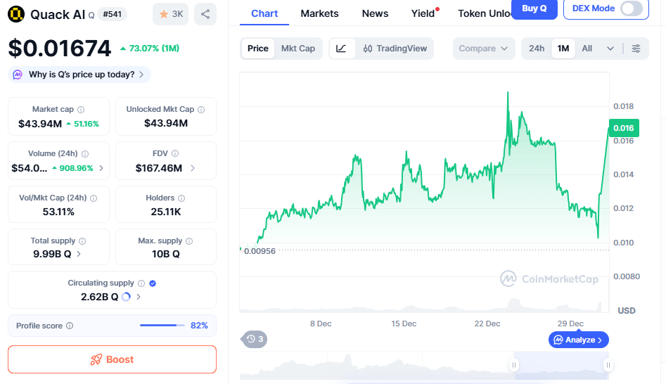 @Quack AI Official a de nouveau surpris le marché non pas par le bruit mais par la performance.