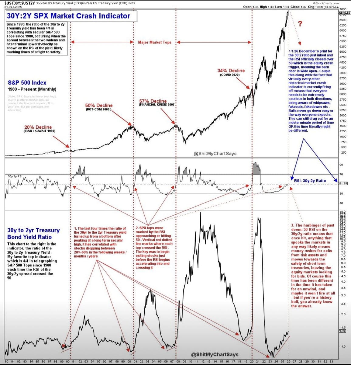 Le ratio de rendement des bons du Trésor US 30Y–2Y a clôturé décembre avec un RSI au-dessus de 50.