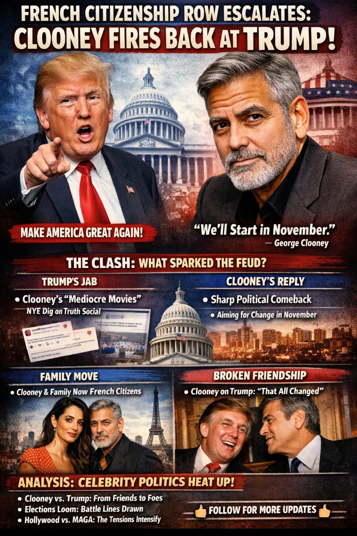 $TRUMP Le conflit politique en cours entre la star d'Hollywood George Clooney et l'ancien président Donald Trump a pris un tournant dramatique alors que les tensions montent sur la citoyenneté française de Clooney.