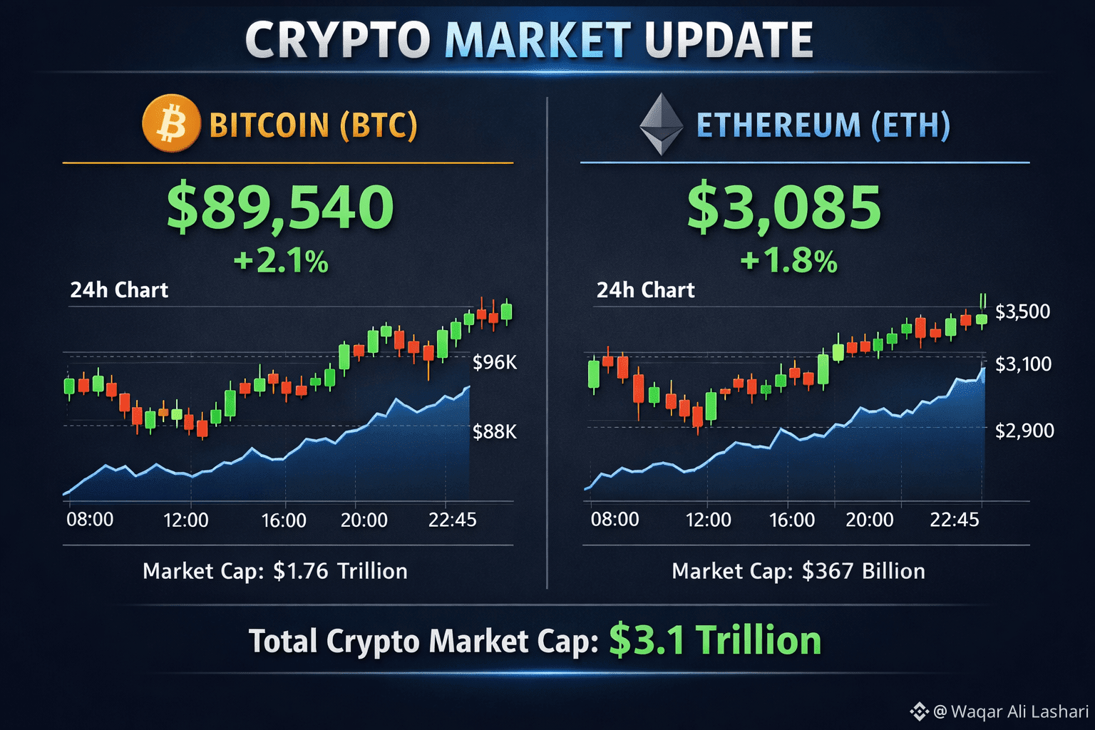 : ~ $89,500+ and showing small gains in the last 24h — market is slightly bullish. �