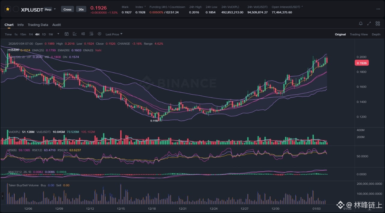 XPL's recent price action reflects a clear bullish impulse within a broader ascending channel on the 4-hour chart. The token has broken above a multi-week downtrend line, originating from the local swing high around mid-December, with candlesticks showing sustained buying pressure through higher lows and an aggressive close above the 50-period EMA. Volume profile highlights accumulation pockets near the $0.14 support zone, where liquidity was swept before the breakout, accompanied by volatility expansion as the Bollinger Bands widen. RSI has climbed out of oversold territory into the 60-70 range, signaling building momentum without immediate overbought divergence. This structure points to a bullish bias, driven by the impulsive green candle sequence rejecting prior consolidation lows, suggesting buyers are targeting liquidity above the recent swing high.