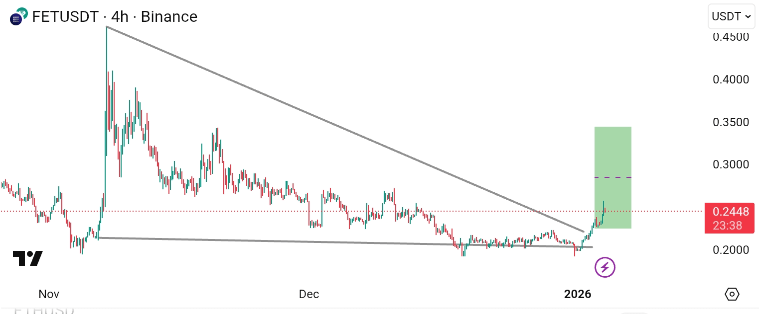âą Zone d'entrĂ©e (retest) : $0.23 â $0.245