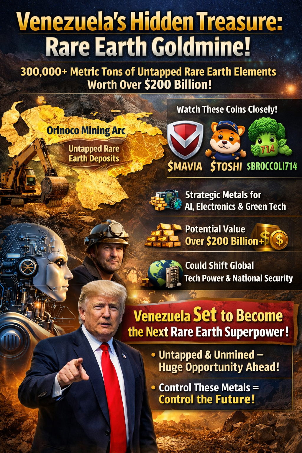 Le Venezuela possède une immense réserve d'éléments de terres rares—les matériaux critiques alimentant l'IA, les semi-conducteurs, les véhicules électriques, les systèmes de défense et l'énergie verte.