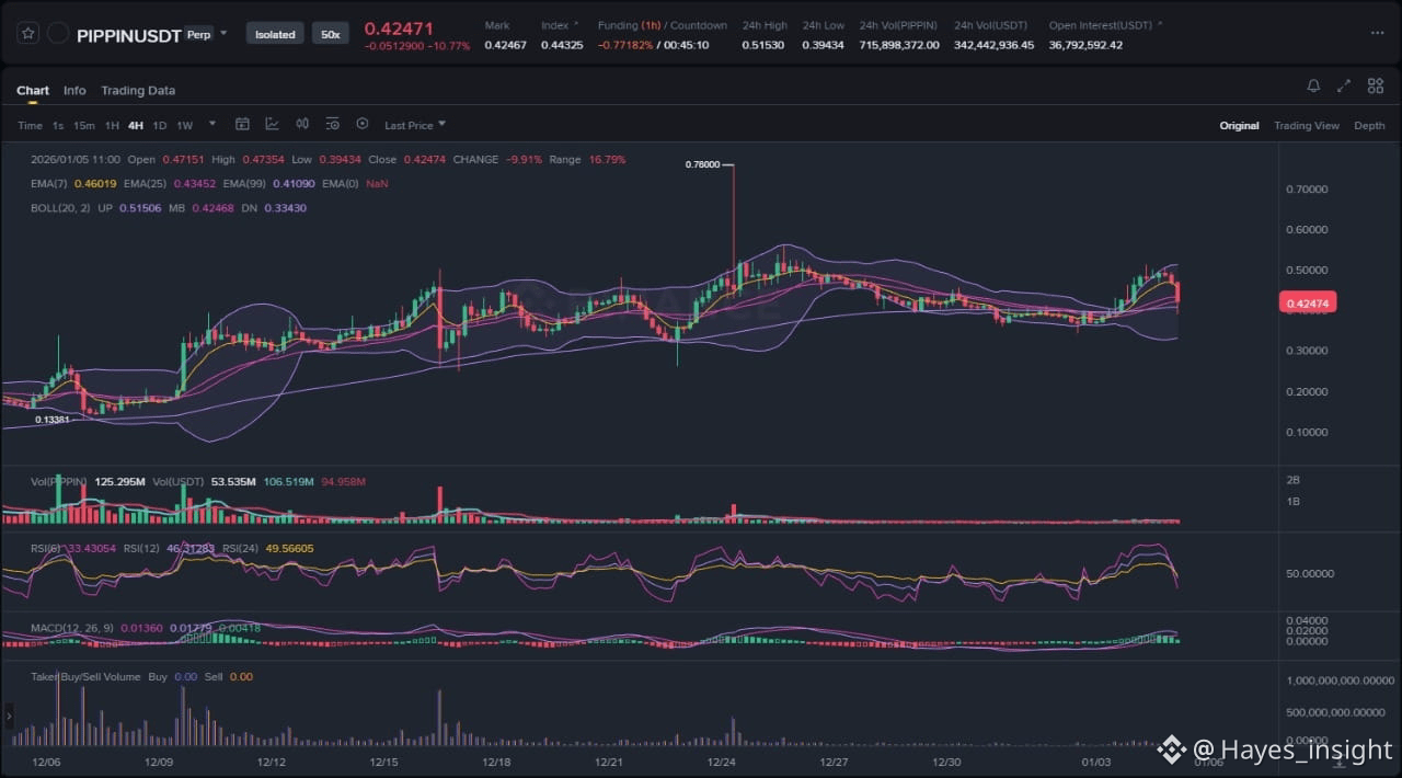 PIPPIN has ignited a sharp 31% rally in the last 24 hours, snapping days of bearish pressure amid a broader meme coin sector rebound, but declining holder metrics and conflicting analyst views raise questions about sustainability. As a senior crypto market analyst on Binance Square, this piece dissects the attached 4-hour chart alongside the three latest news headlines to uncover the underlying price action, news-driven themes, and probabilistic scenarios for traders navigating this volatile swing.