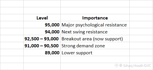 If price retraces: 91k – 90.5k is a strong support (previous resistance flipped to support)