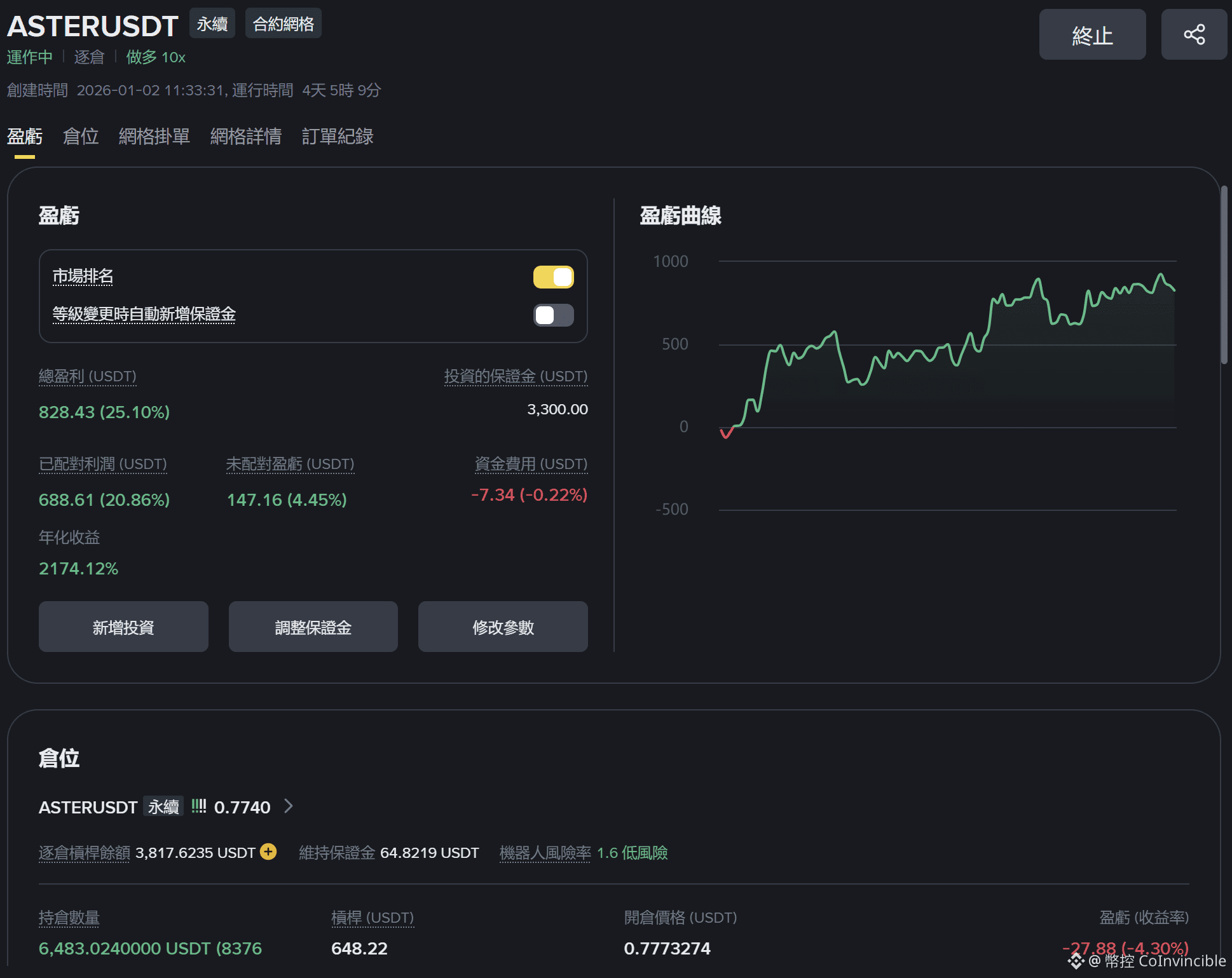 ✔ ASTER 做空合約網格