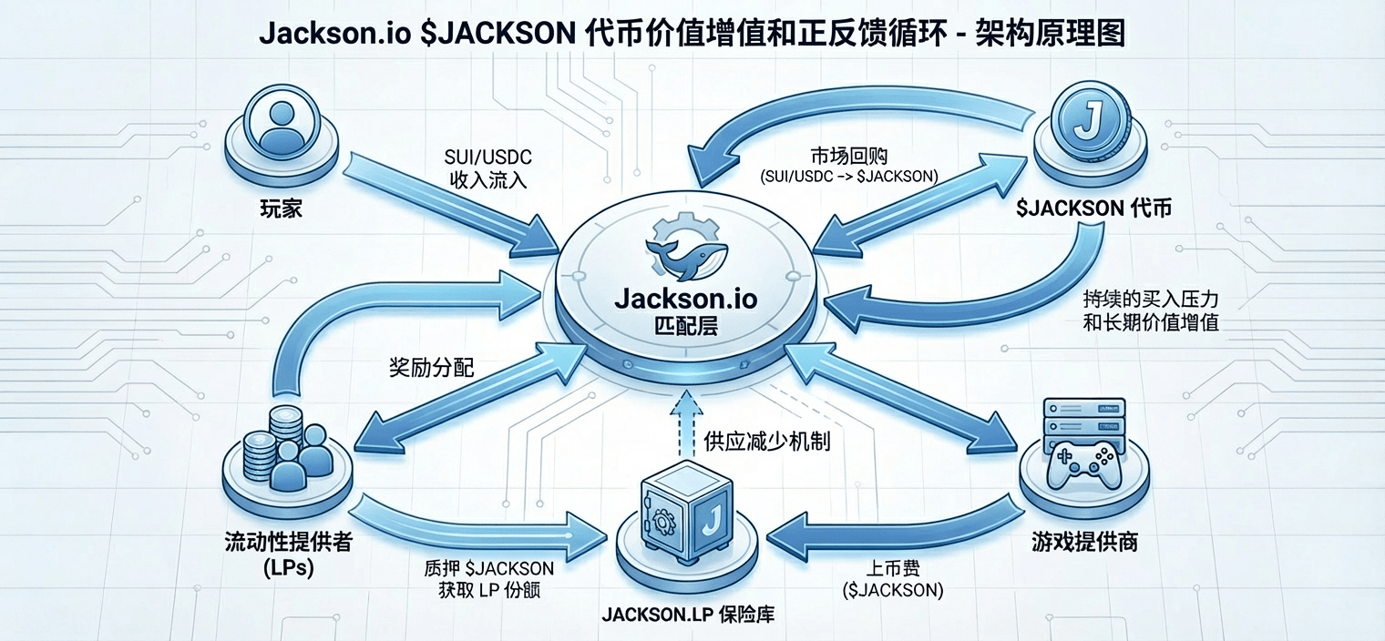 JacksonProtocol ne tire aucun bénéfice des résultats des jeux, mais transfère intégralement les revenus à JacksonLP (fournisseurs de liquidité), créant ainsi un cycle de renforcement positif : la mise en garde attire la liquidité → soutient le prix de la monnaie → permet de bénéficier de la valorisation et des gains potentiels liés aux jeux → incite à une nouvelle mise en garde accrue au prochain trimestre !