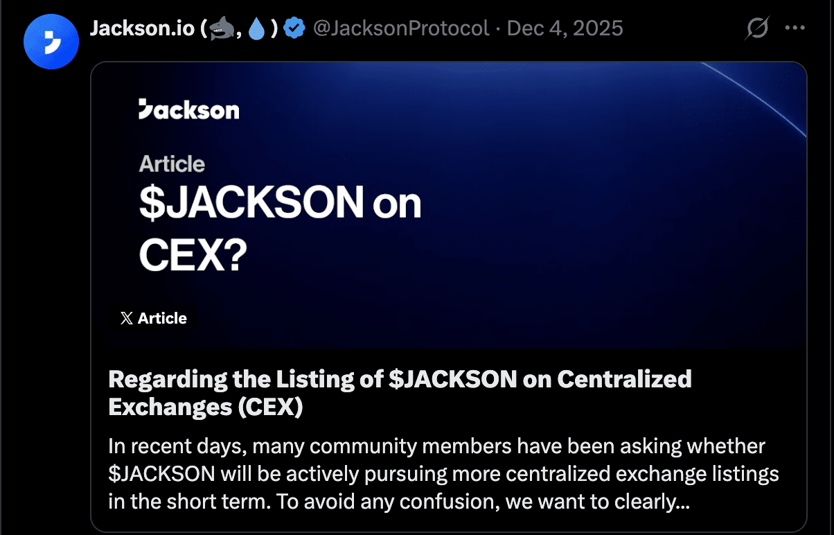 $JACKSON a maintenu une hausse de 300 % depuis son plus bas, même pendant une baisse générale du marché, sans s'effondrer, ce type d'ajustement « sain » n'est pas à la portée de nombreux nouveaux projets.