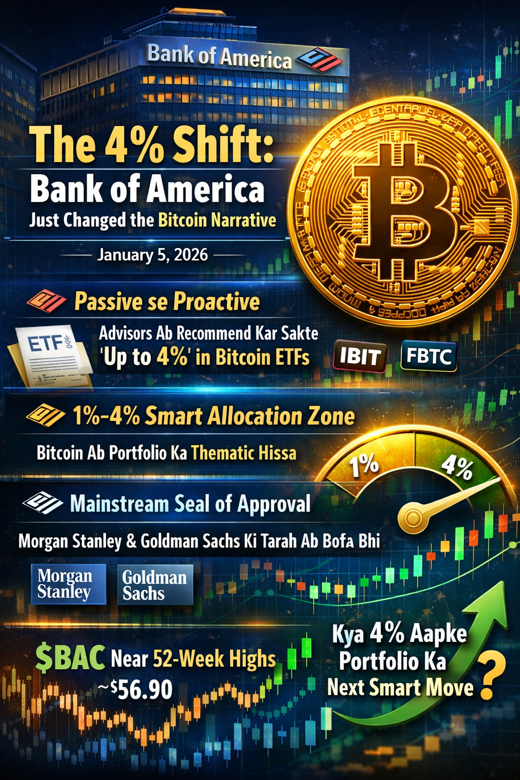 Depuis le 5 janvier 2026, Bank of America a effectuĂ© un grand changement dans sa politique. Ă prĂ©sent, ses plus de 15 000 conseillers en richesse n'attendent plus simplement que les clients posent des questions â ils peuvent dĂ©sormais recommander activement le Bitcoin.