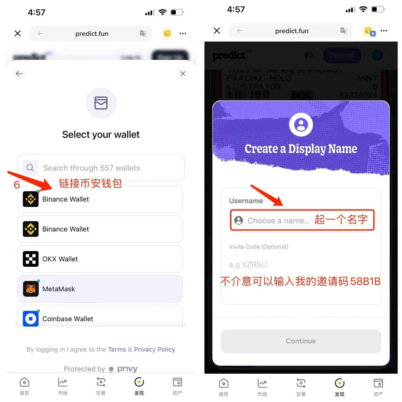 Trois, connectez votre portefeuille Binance, donnez-lui un nom, puis entrez un code d’invitation. Si vous n’avez pas d’objection, vous pouvez utiliser mon code d’invitation « 58B1B »