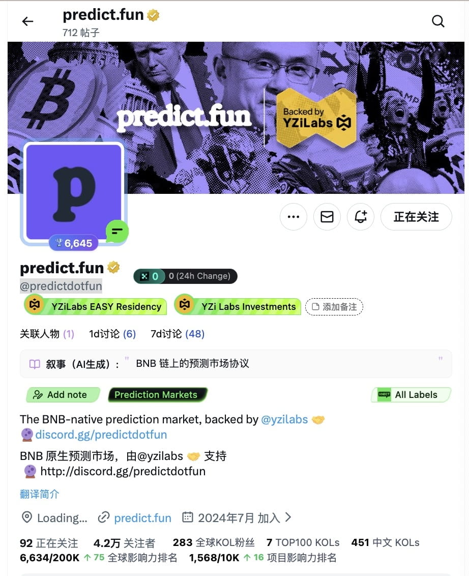 Vous avez remarqué ? predict.fun est désormais officiellement disponible sur le portefeuille Web3 de Binance. Créé par un ancien employé de Binance + financement par YZi Labs, ce statut de « fils préféré » est bien compris par ceux qui savent.