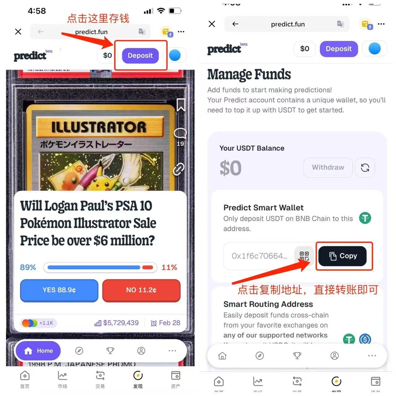 Un, ouvrez le portefeuille Binance sur votre téléphone, allez dans Découvrir ➡️ Opportunités sur la chaîne ➡️ sélectionnez predic.fun