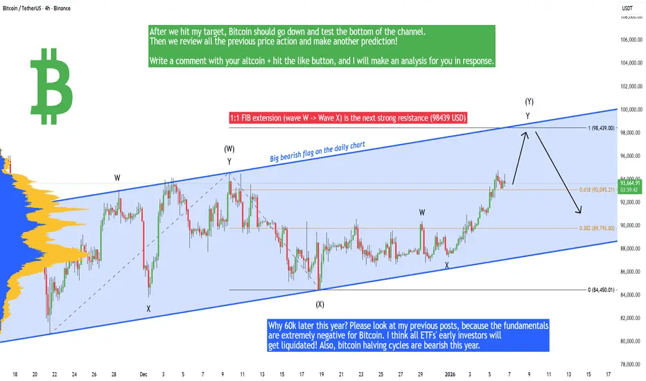 À court terme, Bitcoin forme une projection de canal parallèle ascendant ou un drapeau baissier, donc si le prix atteint la ligne de tendance haussière, c'est un bon moment pour ouvrir une position courte ou réaliser des bénéfices sur votre position longue. Ensuite, nous pouvons descendre jusqu'au fond du canal et tester la ligne de tendance en légère hausse vers 89 000 $. Pourquoi 60 000 $ plus tard cette année ? Veuillez consulter mes publications précédentes, car les fondamentaux sont extrêmement négatifs pour Bitcoin. Je pense que tous les investisseurs initiaux des ETF seront liquidés ! En outre, les cycles de réduction de moitié de Bitcoin sont baissiers cette année.