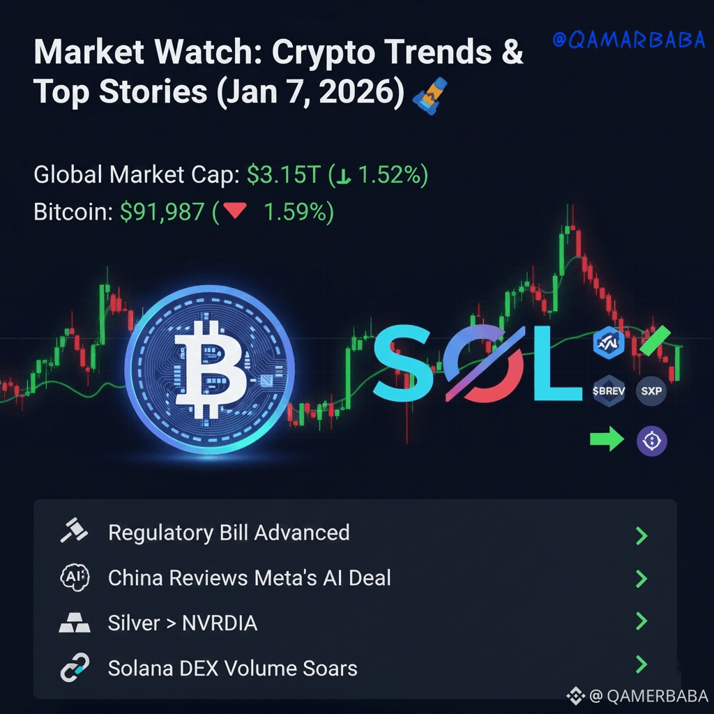 The global crypto market cap currently stands at $3.15T, reflecting a 1.52% dip over the last 24 hours. A healthy consolidation or a buying opportunity? You decide!
