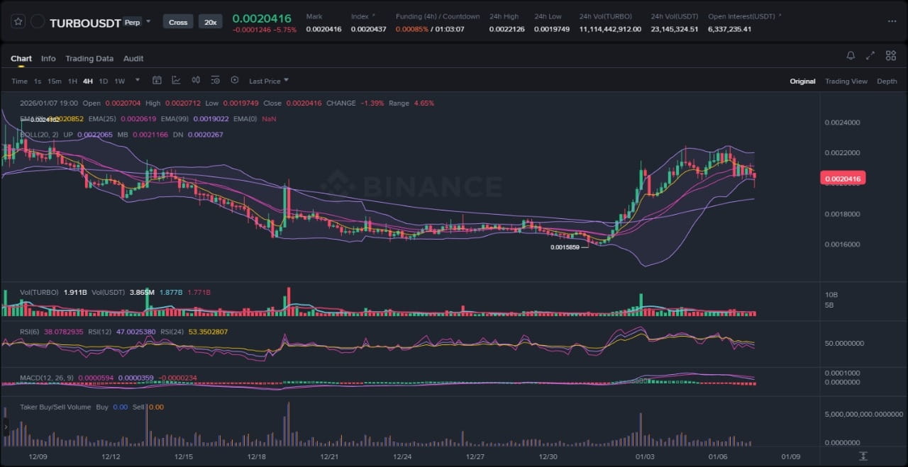 Dans le domaine instable des marchés des cryptomonnaies, TURBO s'est imposé comme un acteur de premier plan, affichant une progression spectaculaire de 35 % en une seule journée, portée par des confirmations techniques et des développements positifs au sein de son écosystème. En tant qu'analyste senior du marché des cryptomonnaies sur Binance Square, cette analyse explore l'interaction entre l'évolution récente du prix de TURBO, telle qu'elle apparaît sur le graphique joint, et les trois dernières actualités qui façonnent son récit. Avec une volatilité croissante et des indicateurs qui s'alignent pour une possible poursuite de la tendance, TURBO illustre comment la dynamique peut s'accumuler chez les altcoins au sein d'un mouvement général de rotation du marché, bien que les risques de réversion à la moyenne demeurent importants dans cet environnement spéculatif.