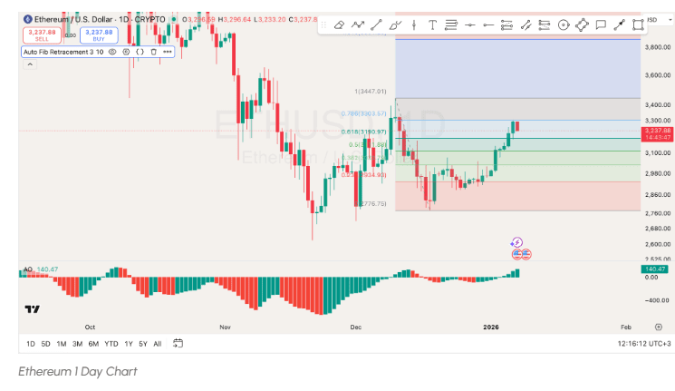 Un graphique CoinGecko montre une impulsion positive, en particulier à partir du 6 janvier, avec une forte augmentation du prix avant une stabilisation au-dessus de 3 240 $. Étant donné la tendance haussière, le prix d'Ethereum pourrait continuer à augmenter, en particulier s'il franchit les niveaux de résistance immédiats au-dessus de 3 300 $.