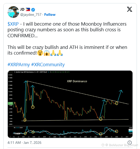Pourquoi cela compte : Historiquement, les plus fortes poussées de XRP n'ont lieu que lorsque sa part de marché (dominance) confirme une percée structurelle. Nous sommes désormais à ce point critique ! 🏁