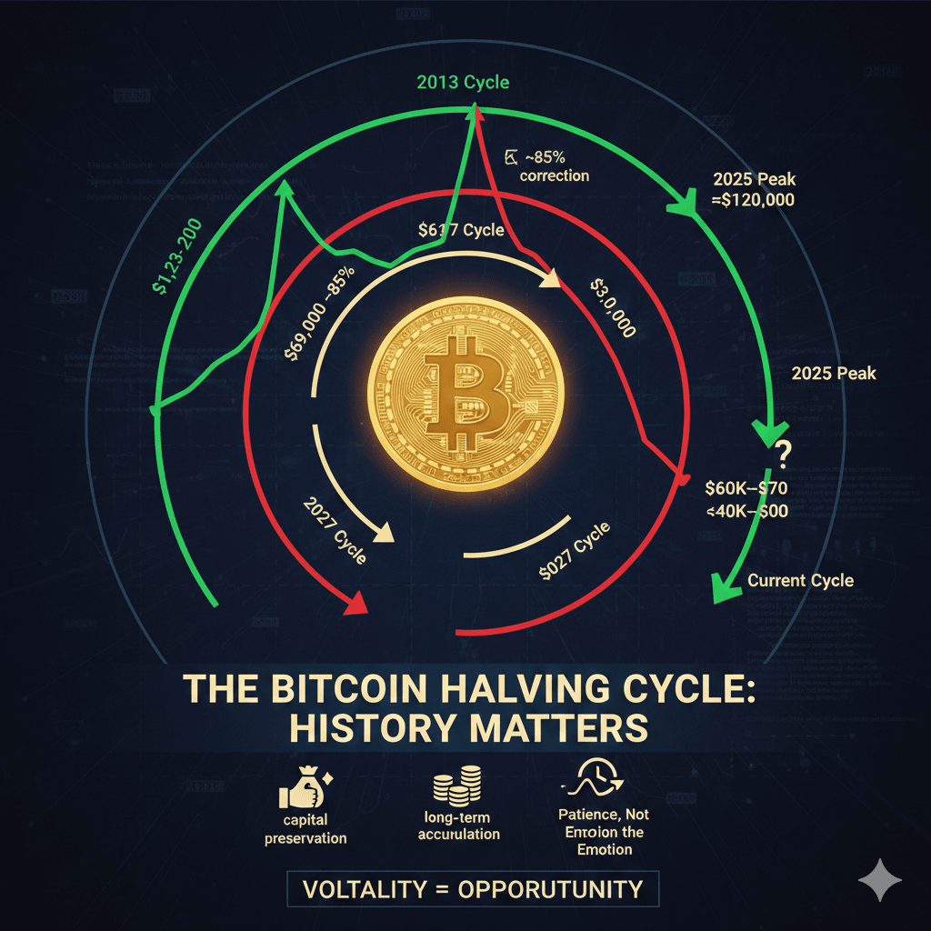 Chaque cycle suit la même histoire : une hausse parabolique, l'euphorie, puis une correction brutale.