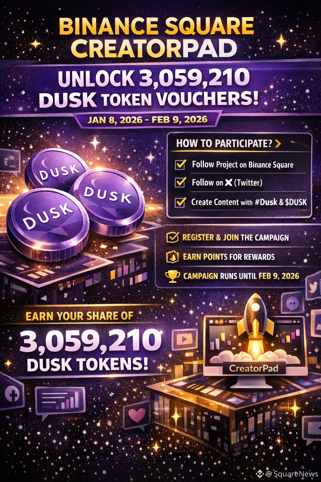 Binance Square has just launched a big new campaign where verified users can complete simple tasks on CreatorPad to earn points and unlock a share of 3,059,210 DUSK token voucher rewards! ïżœ