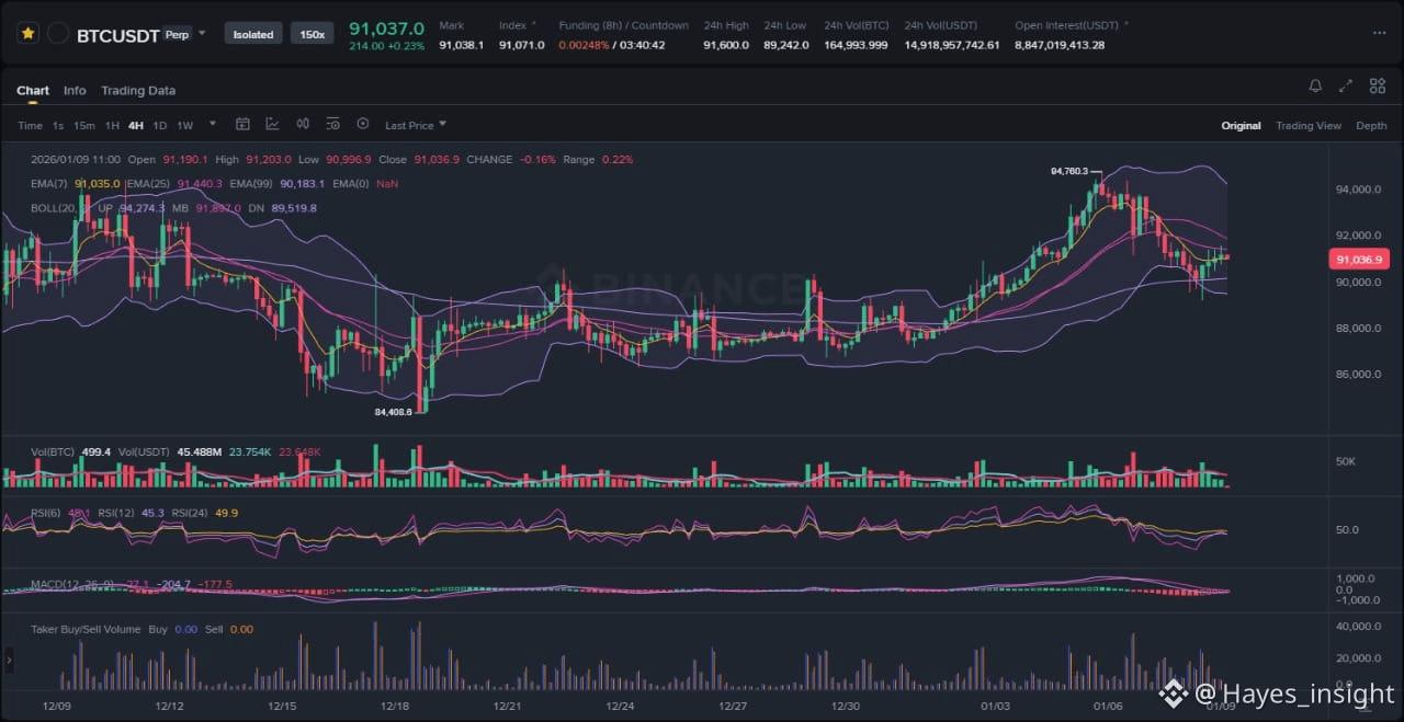 Practical points to monitor include volume behavior at the $89,800 support cluster, where a spike in buying interest could indicate absorption of sell orders and reversal potential; reaction at the upper Bollinger Band upon any rebound, as rejection there might extend consolidation; and momentum shifts via MACD crossovers, particularly if the signal line flattens, hinting at stabilization before the next impulsive move. Additionally, track open interest resets in futures markets post-liquidation, as diminishing leverage could foster a healthier setup for upside liquidity hunts.