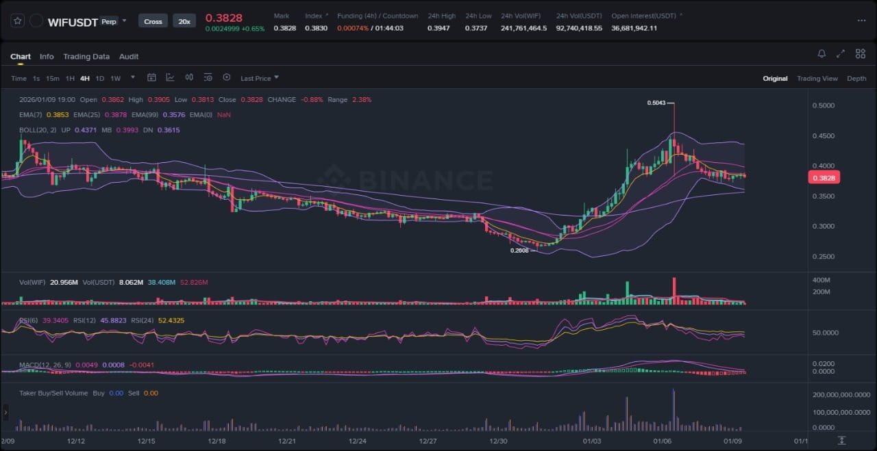 En contraste, le thème baissier lié à la résistance de Fibonacci et aux risques de correction est évident dans l'article Dailycoin du 8 janvier 2026, qui mentionne que WIF est arrivé dans une zone « à prendre ou à laisser » après la hausse de 70 %. Les acheteurs doivent défendre les niveaux clés de Fibonacci pour maintenir la « casquette », sinon un repli rapide vers les plus bas annuels est à craindre – soulignant ainsi la probabilité de rejet aux barrières en hauteur. L'article Crypto News du 6 janvier 2026 renforce ce point en détaillant un squeeze court poussant les prix vers la résistance de Fibonacci à 0,50 $, augmentant les chances de rotation vers la zone de trading. Ce ton baissier, centré sur les aspects techniques spécifiques au projet, entre en conflit partiel avec la tendance haussière des whales : bien que l'accumulation indique une force, la faiblesse du momentum après le squeeze suggère un événement « vendre l'actualité » ou une distribution, où une bonne nouvelle ne parvient pas à soutenir le prix, conduisant à une réversion vers la moyenne.