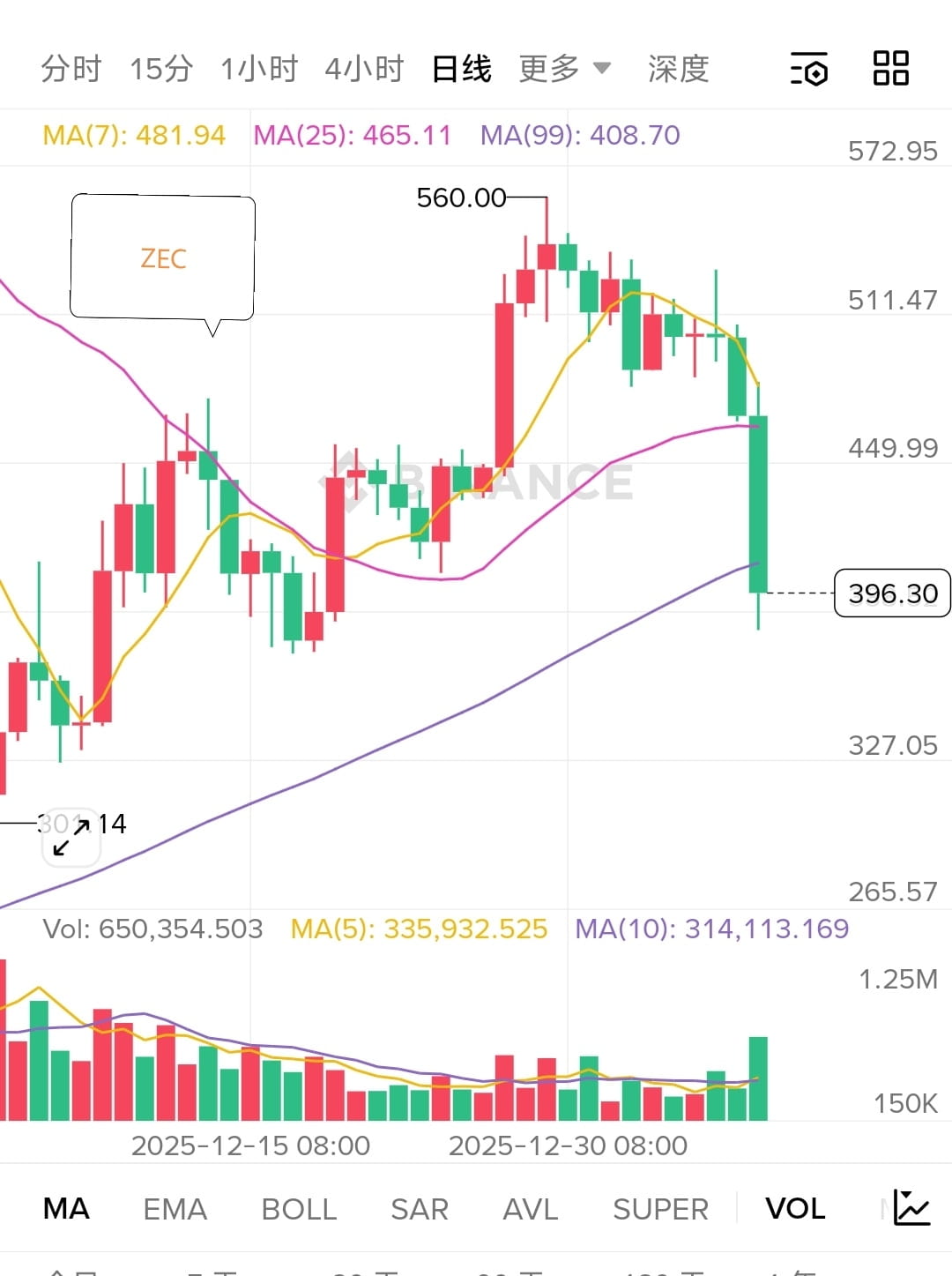 消息一出,ZEC直接跳水超20%,从高点一度跌到$380附近,现在回血徘徊在**$370-$449**区间(截至1月10日)。
