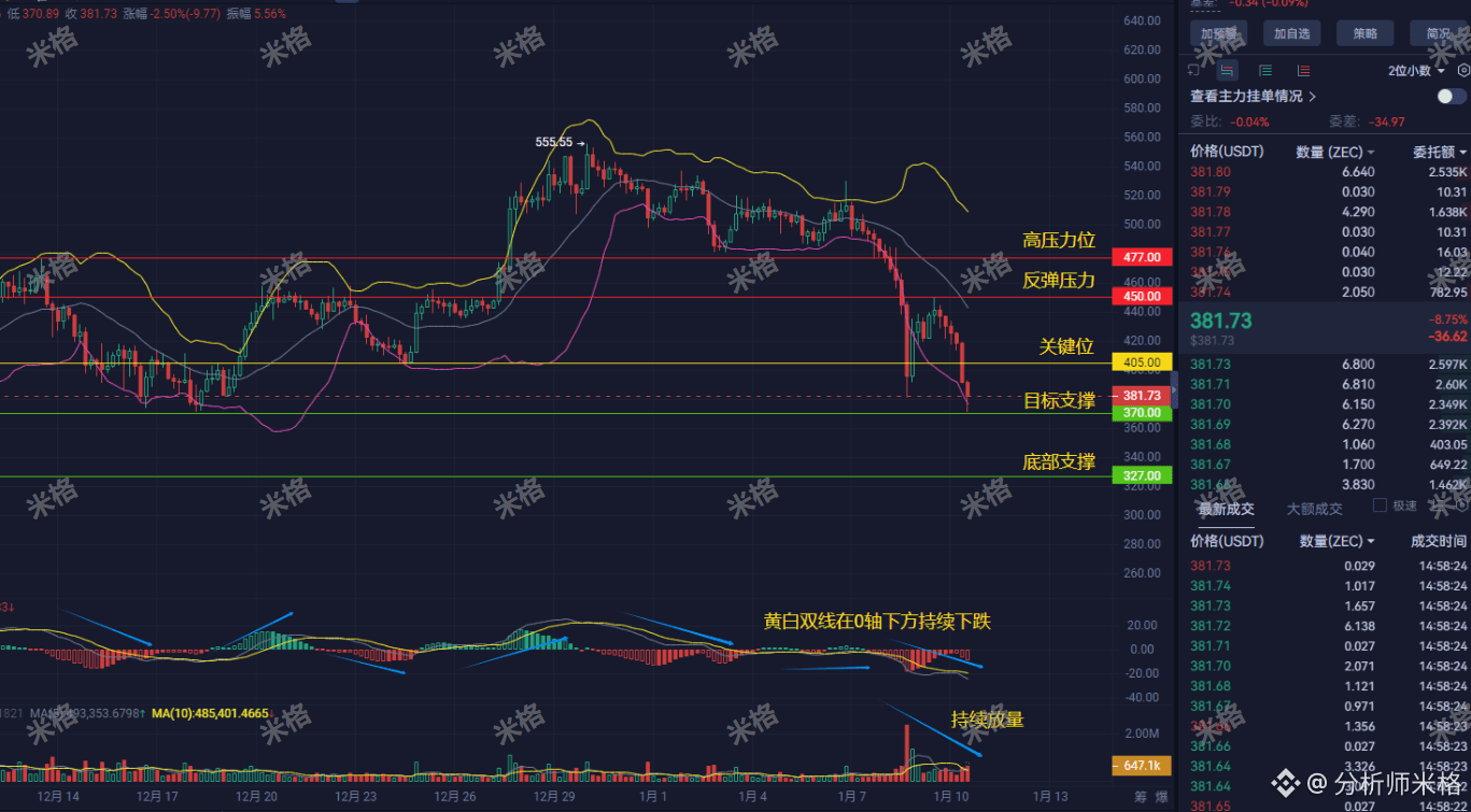 今天盯盘到现在,ZEC这个走势真是让人揪心啊。很多朋友发图问我:“米格,这币是不是没救了?要不要割?”