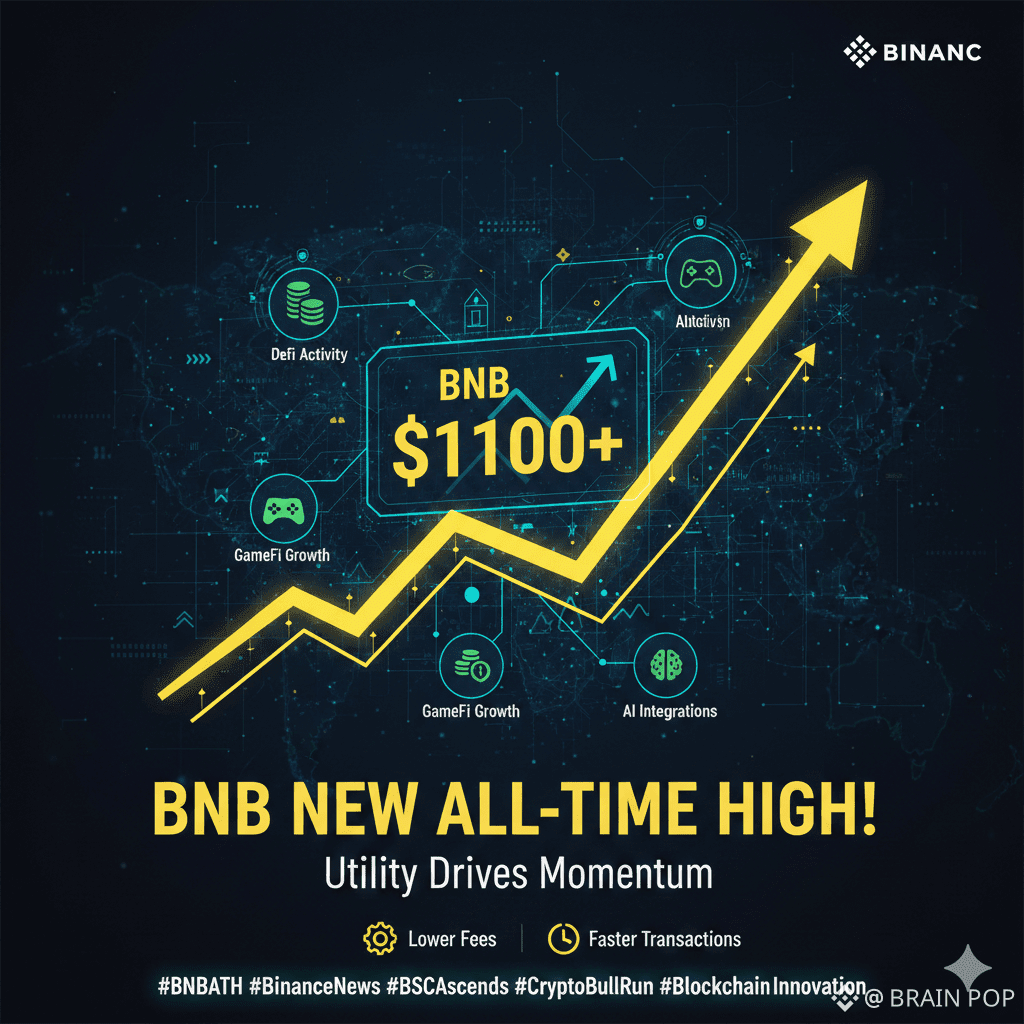 $BNB has officially surged past $1,100, marking a powerful new all-time high and signaling strong confidence in the Binance ecosystem 💛