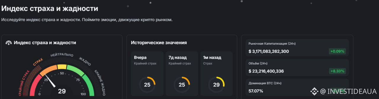Индекс страха и жадности: 29 — страх, выхода в нейтраль нет