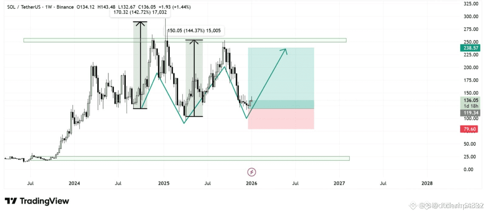 If momentum begins to build from here, the first upside target lies around $180–$200. A decisive breakout above that range opens the path toward $250+, and if the broader market cycle continues, $300+ cannot be ruled out in the next expansion phase.