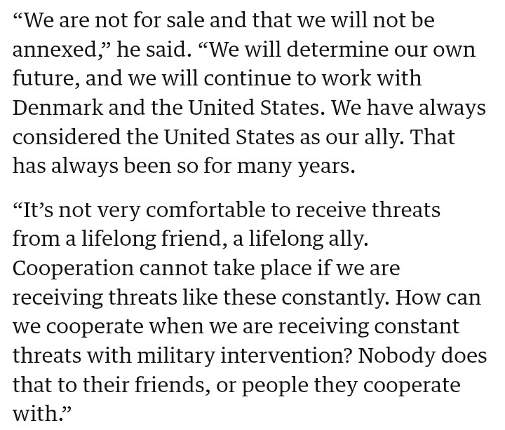 • Le Premier ministre du Groenland a été sans équivoque : « Nous ne sommes pas à vendre. »